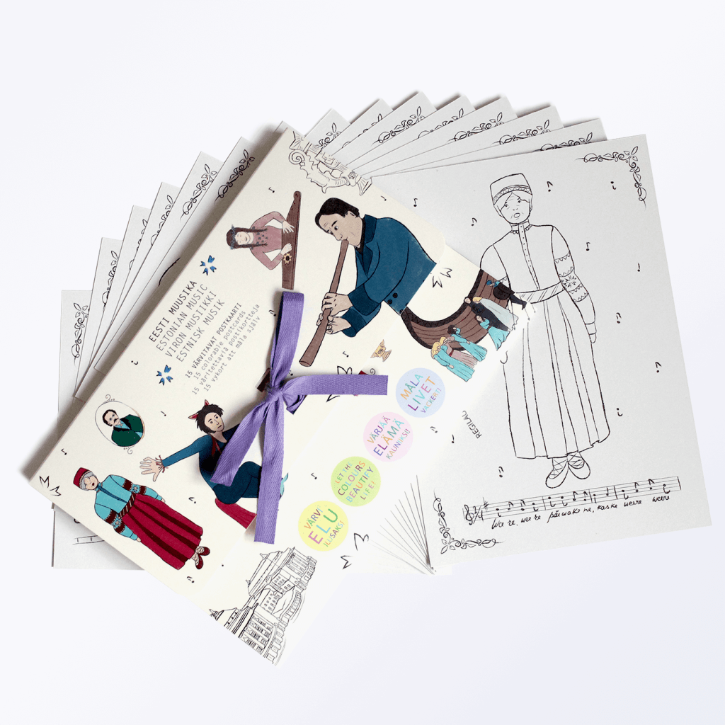 15 unique illustrations for couloring postcards “Estonian Music”.